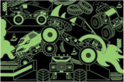 Kreirajte dinamičnu i uzbudljivu scenu s puzzlom Monster Trucks, koja nakon gašenja svjetla svijetli u mraku! Ova slagalica uključuje 100 precizno izrezanih dijelova i napravljena je od recikliranih i održivo dobivenih materijala. Posebna mat površina osigurava vjerno prikazivanje svih detalja i boja.