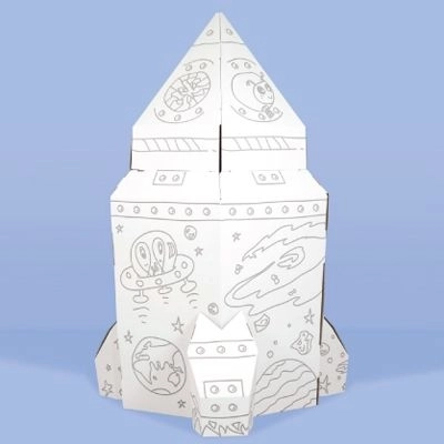 Ova velika kartonska raketa nakon sastavljanja pretvara se u dojmljiv element za igru koji potiče maštu i kreativnu igru. Zahvaljujući robusnoj kartonskoj izvedbi lagana je i lako prenosiva.