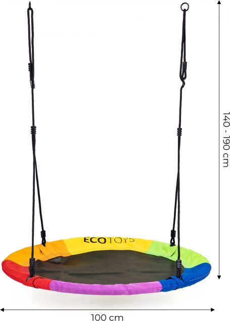 Vrtna ljuljačka gnijezdo roda osigurat će djeci dugotrajnu zabavu na otvorenom! Idealno rješenje za kućni vrt ili dječje igralište.Zahvaljujući podešavanju duljine užadi, ljuljačka se može prilagoditi visini i najmlađih korisnika, što im olakšava korištenje.