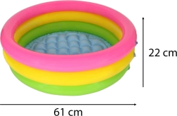 Razveselite djecu bazenom stvorenim za vruće dane. Kompaktne dimenzije 61 × 22 cm, tri zasebno napuhavajuća prstena u duginim bojama i napuhavajuće dno za veću udobnost čine ovaj model odličnim izborom za najmlađe.