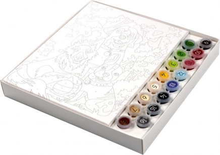 Set sadrži predtisnuto platno, 16 akrilnih boja i 2 kista. Otvorite, uskladite brojeve i slikajte bez dugotrajne pripreme.