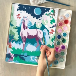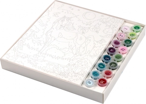 Otkrijte opuštanje i kreativnost uz set slikanje po brojevima – jednorog. Idealan za početnike i napredne: dovoljno je nanijeti odgovarajuću boju na numerirana polja i lako ćete stvoriti vlastitu sliku s čarobnim motivom jednoroga.