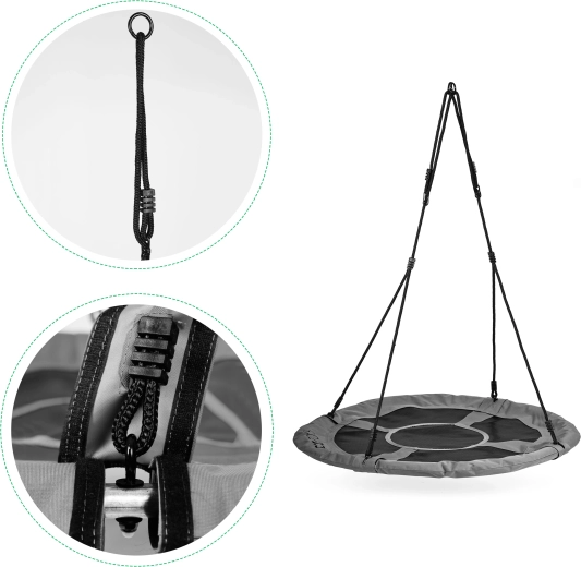Gnijezdo-ljuljačka ECOTOYS pruža izvrsnu zabavu djeci i odraslima u vrtu, dvorištu ili na igralištu. Široko sjedalo promjera 100 cm udobno je za sjedenje i poluležaj, dok pocinčana čelična konstrukcija i izdržljiv poliester osiguravaju dugi vijek trajanja i pri vanjskoj upotrebi.