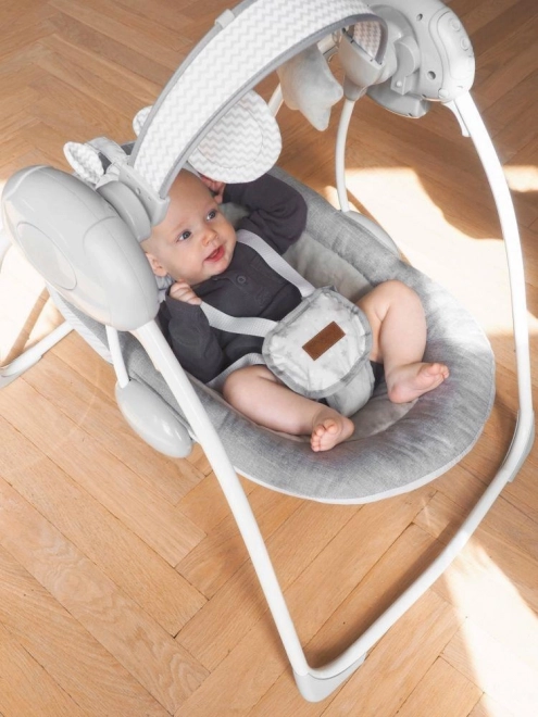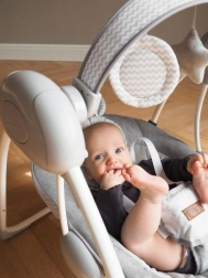 Ležaljka LISS sama se njiše unaprijed postavljenom brzinom i isključuje kada vi želite. Reproducira ugodne, uspavljujuće melodije i nudi lijepe, vesele igračke. Osim toga, udobna je, sigurna i prijenosna. Višenamjenska je, gotovo kao mamina pomoć!