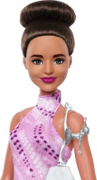Lutka je odjevena u stilsku ružičastu odjeću za klizanje, idealnu za bilo koji nastup na ledu.