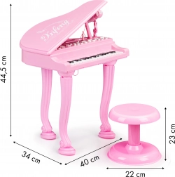 Uživajte u nezaboravnoj zabavi s ovim ružičastim klavirom koji će unijeti glazbenu atmosferu u vaš dom. Klavir je dizajniran kako bi djeci omogućio komponiranje vlastitih pjesama i pruža realističan izgled pravog instrumenta. Dio seta je stolica koja osigurava udobnost pri sviranju za vašeg malog umjetnika.