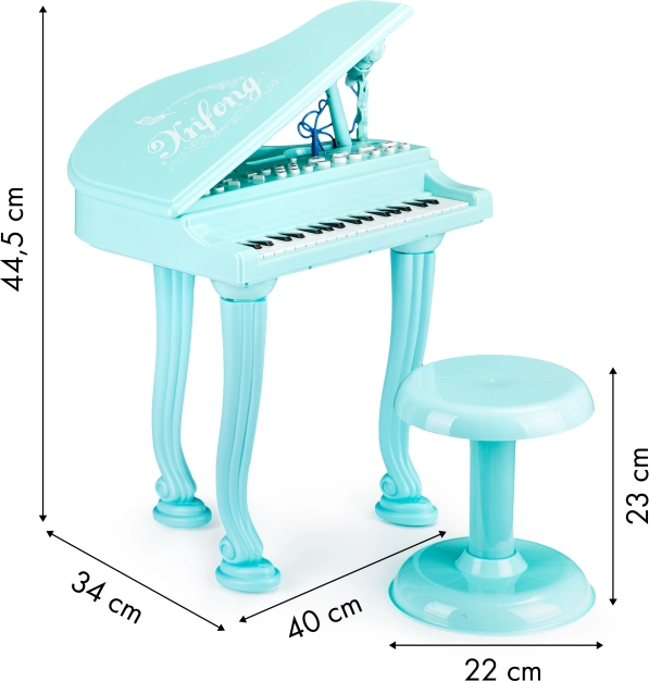 Predstavljamo dječji klavir, koji će vašoj djeci omogućiti ulazak u svijet melodije i komponiranje vlastitih skladbi. Ova igračka izgleda kao pravi instrument s priloženom stolicom, što će omogućiti vašem malom umjetniku da udobno sjedi ispred tipki. Klavir brzo postaje omiljeni i dnevni boravak pretvara se u koncertnu dvoranu.