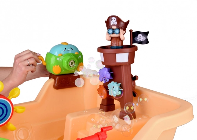 - Stojeći gusarski stolić/brod, dodaci (kalupi, životinjice), puhač mjehurića
