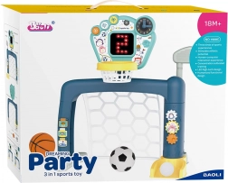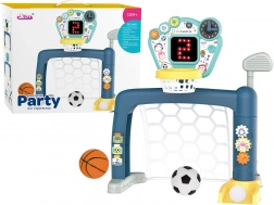 Ovaj dječji sportski set 3-u-1 donosi zabavu i razvoj vještina u jednom pakiranju. Dijete može zabijati golove, bacati na koš ili udarati golf loptice, dok trenira motoričke vještine, koordinaciju oko–ruka i prostornu orijentaciju. Interaktivni panel nudi svjetlosne efekte, zvukove i glazbu koji potiču aktivnu igru i koncentraciju.