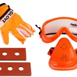 U kompletu su naočale, maska i rukavice. Djeca na razigran način uče osnove sigurnosti pri radioničkim aktivnostima.