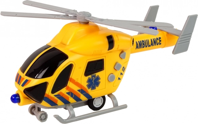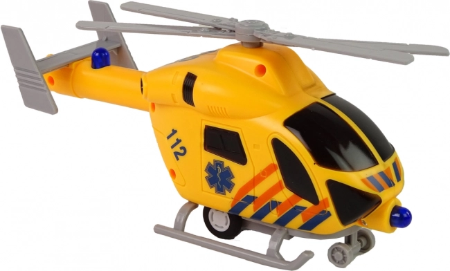 Ovaj realistični spasilački helikopter u jarko žutoj boji uvodi djecu u svijet zračnih misija. Pritiskom bočnih gumba aktiviraju se autentični zvukovi i bljeskajuća svjetla koji pojačavaju doživljaj spasilačke akcije. Zahvaljujući inercijskom pogonu dovoljno je povući helikopter unatrag i pustiti – kreće naprijed bez baterija za pogon kretanja.