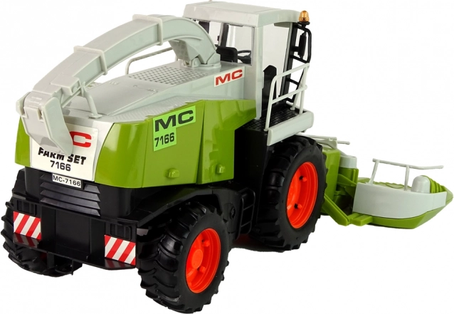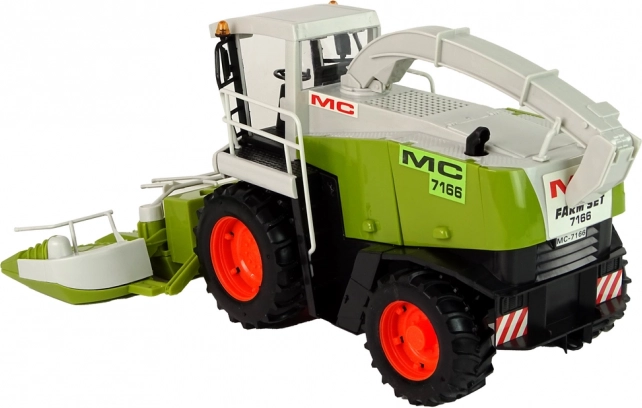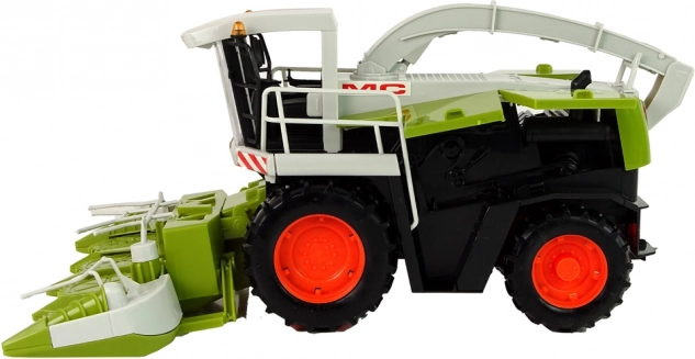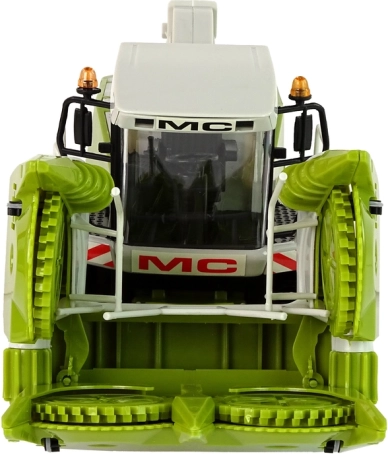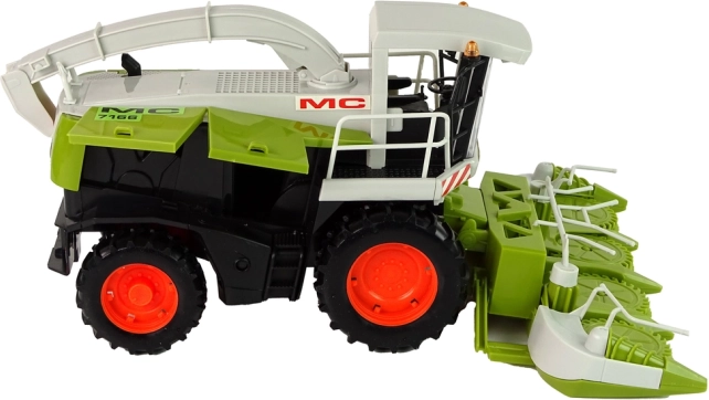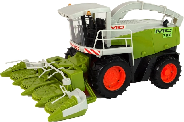 Veliki zeleni kombajn nudi realističan izgled s pokretnim dijelovima poput upravljača ili žetelica, koji simuliraju stvarni rad na polju. Otvorni dijelovi omogućuju glumu popravaka i servisiranje vozila, dok prostrana unutrašnjost omogućuje pohranu sitnica ili igračaka.