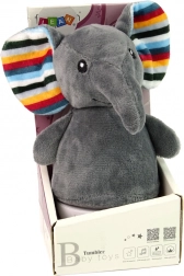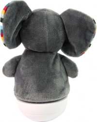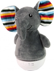 Slon ima na donjoj strani dva upravljačka gumba - jedan za uključivanje igračke i drugi za postavljanje melodije. Melodije su osmišljene da budu mirne i umirujuće. Zaštitna navlaka u obliku slona lako se skida i pere, što osigurava higijenu proizvoda.