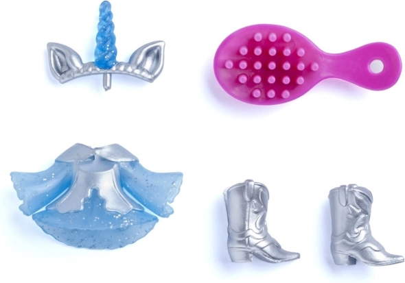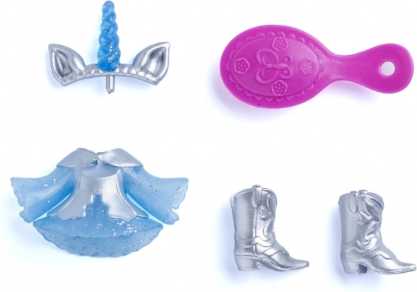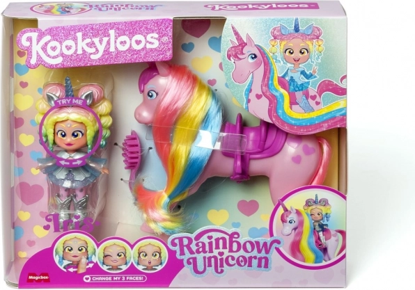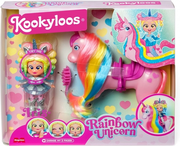 Vjerujete li u jednoroge? U svijetu KookyLoos sve je moguće! Upoznajte Auroru i njezinog duhovog jednoroga po imenu Star, čija je griva napravljena od prave kose! Počešljajte je četkom i isprobajte različite frizure. Pripremite se za tisuću avantura s KookyLoos. Ne zaboravite da svaki KookyLoos ima vlastite dodatke koje možete kombinirati i mijenjati s ostalim KookyLoos, te mijenjati njihova lica jednim klikom. Set sadrži: 1 lutku, 1 jednoroga, 1 četku, 1 odjeću.