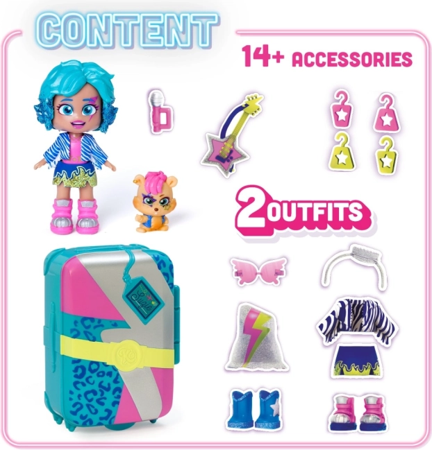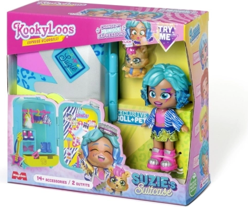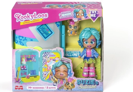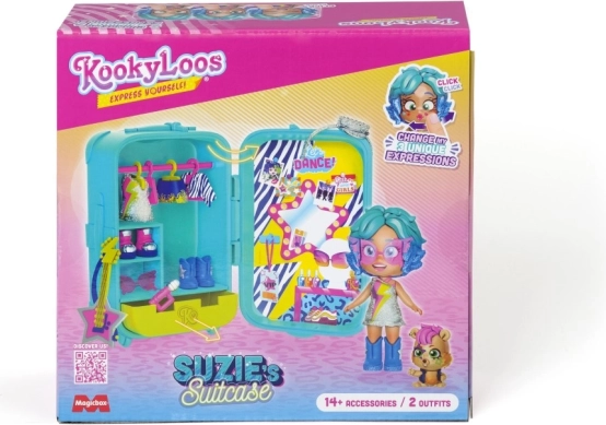 Jeste li spremni krenuti na put? Koferčić KookyLoos sadrži sve što vam je potrebno za sjajnu zabavu. Čekaju vas do 4 modela za sakupljanje! Suzi je prava modna znalica. Njezina haute couture odjeća je najnoviji pariški modni stil! Jeste li spremni za obilazak draguljarnica na trgu Place Vendôme i Rue Chambon? Ali vi odlučujete koju će od dvije odjevne kombinacije odjenuti za najnoviju modnu reviju! Ima i tri različita izraza lica koje možete promijeniti jednim klikom. Sve možete spakirati u koferčić i ponijeti sa sobom! Koferčić sadrži – ekskluzivnu lutku KookyLoos, 2x odjeću, 1x životinjicu, više od 13 dodataka i vješalice.
