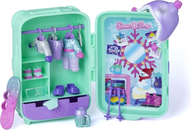 Kofer služi kao mini garderoba i spremišni prostor, pa imate sve outfite, životinjicu i dodatke lijepo na okupu. Dvije zimske kombinacije odjeće, daska i tematski dodaci potiču maštu i finu motoriku.