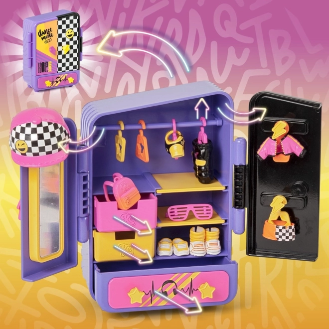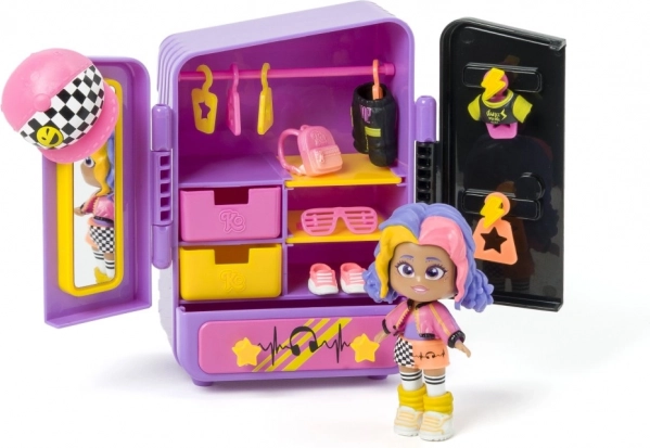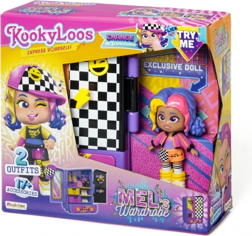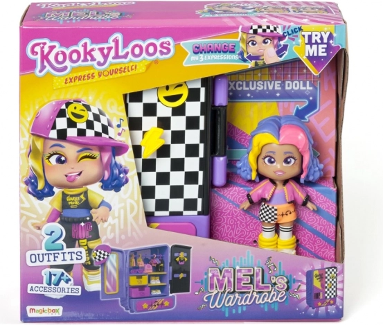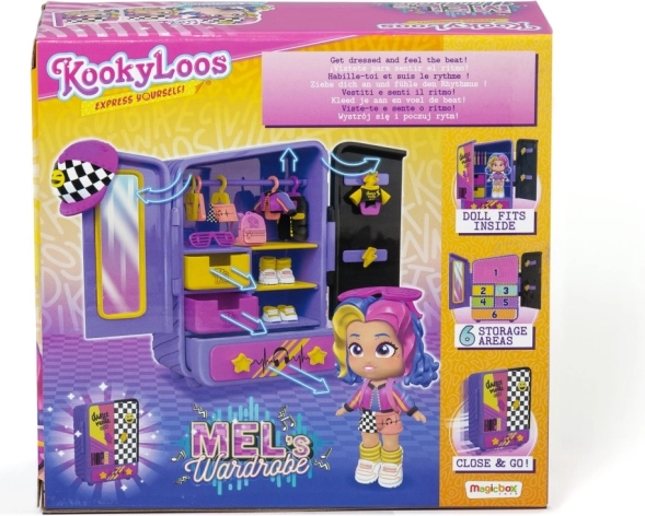 Uronite u svijet mašte s igraćim setom KookyLoos Mel, koji donosi zabavu i kreativnost u svaki trenutak igre. Set sadrži lutku Mel koja voli hip-hop i ples. S njezinim upečatljivim outfitima možete pripremiti vlastito plesno natjecanje ili organizirati modnu reviju prema vašem raspoloženju. Ormarić u elegantnim ljubičasto-ružičastim nijansama omogućuje vam pregledno pohranjivanje svih dodataka. Svaka igra je jedinstvena zahvaljujući promjeni izraza lica lutke jednostavnim klikom.