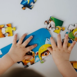 Drvene puzzle s motivom Psi Patrola izrađene su od kvalitetnog prirodnog drveta, posebno dizajnirane za djecu. Sigurne su zahvaljujući zaobljenim rubovima i pravilnom obliku komada. Veliki komadi olakšavaju slaganje već za djecu od 3 godine.
