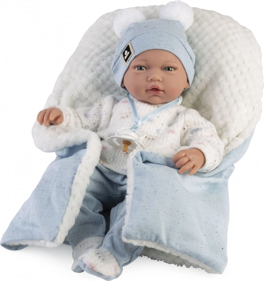 Realistična lutka beba s mekim platnenim tijelom, koje se lako može postaviti. Ruke i noge su pričvršćene zglobovima, što omogućava lutki da sjedi. Isporučuje se s duduom kao dodatkom.