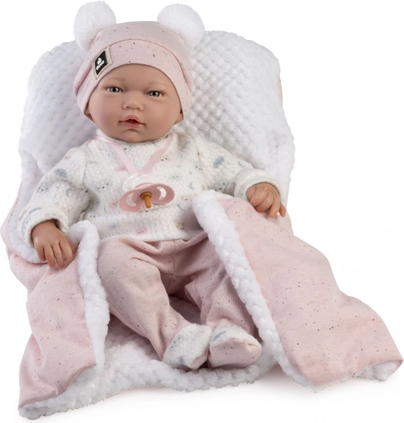 Otkrijte čaroliju igre s realističnom bebom lutkom marke GUCA. Ova lutka ima mekano tkaninsko tijelo, što je čini ugodnom na dodir i idealnom za maženje. Ruke i noge su povezane zglobovima, što omogućuje lako postavljanje lutke i čak sjedenje.