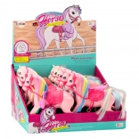 Konj ima plave oči koje mu daju jedinstven izraz i čine ga posebno slatkim. Njegov čaroban izgled upotpunjuje ružičasto sedlo, pažljivo usklađeno bojama. U pakiranju se nalazi i ružičasta četka, idealna za uređivanje grive i repa, tako da se vaše dijete može u svakom trenutku brinuti o svom omiljenom konju.
