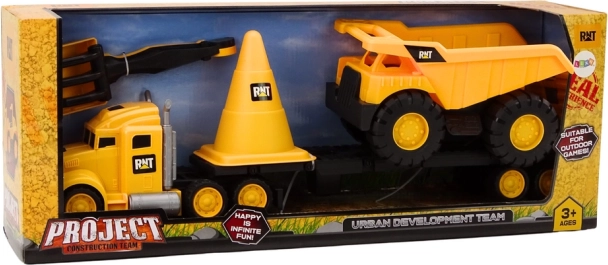 Ovaj realistični građevinski set oduševit će svako dijete koje voli svjetove gradilišta. Žuti tegljač s prikolicom udobno prevozi kiper, veliki prometni stožac označava gradilište, a lopatica i grabljice pobrinut će se za sate zabave u pijesku i vrtu. Igračke su izrađene od kvalitetne, izdržljive plastike koja se lako čisti.