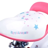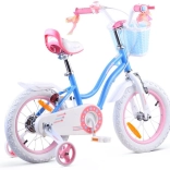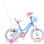 Stilizan dječji bicikl RoyalBaby Star Girl s veličinom kotača 14″ idealan je za prve vožnje. Nudi stabilnost zahvaljujući pomoćnim kotačićima, sigurne ručne kočnice, potpuni pokrov lanca i udobno sjedalo s ručkom. U kompletu su prednja košara, zvonce i šarene vrpce na upravljaču – sve za radosno i sigurno učenje vožnje.
