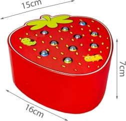 Zabavna drvena igra u obliku jagode u kojoj djeca pomoću magnetske palice hvataju šarene crviće skrivene u rupicama i potom ih ponovno umeću. Potiče finu motoriku, koordinaciju oko–ruka i koncentraciju. Sigurna izrada od kvalitetnog drva i žive boje mame na ponovnu igru.