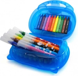 Praktičan i šaren kovčeg za male umjetnike od 1 godine. Sadrži 10 flomastera Color’Peps Jumbo, 12 voštanih bojica Jumbo i veliki poster 51 × 33 cm za bojanje. Flomasteri imaju deblji vrh, perivu tintu i živopisne boje, a voštane bojice su lako prihvatljive i izdržljive. Idealno za dom, vrtić i putovanja.