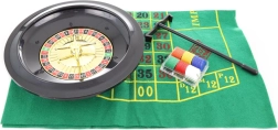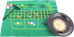 Društvena igra Rulet. Pakiranje sadrži rulet promjera oko 25,5 cm, platno, grabljice, 2 metalne kuglice, 60 obojenih žetona i pravila igre. Dimenzije pakiranja približno 42,5 x 33 x 6 cm. Dob 3+.