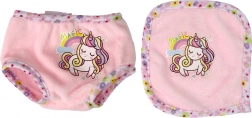- Odvojiva odjeća: Ružičasta pidžama, podbradak i gaćice s jednorogom lako se skidaju i mogu se zamijeniti drugim outfitom.