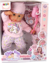Otkrijte prekrasnu dječju lutku koja je savršen pratitelj za svako malo dijete. Lutka je opremljena motivom jednoroga i zvučnim efektima, zahvaljujući kojima je igra još zabavnija.