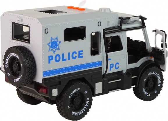 Zahvaljujući prednjim vratima koja se otvaraju, djeca mogu istraživati interijer vozila i stvarati vlastite scenarije. Zvučni i svjetlosni efekti pojačavaju uzbuđenje! LED svjetla na prednjem dijelu vozila uključuju se pritiskom na jednu od tri tipke na krovu, a zvukovi alarma dodaju realističan dojam.