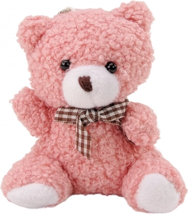 Ovaj slatki ružičasti plišani medvjedić idealan je kao privjesak za ključeve, ruksak ili torbu, a jednako dobro može poslužiti i kao mazilica za manju djecu. Smeđa mašna oko vrata dodaje dozu elegancije i stila.