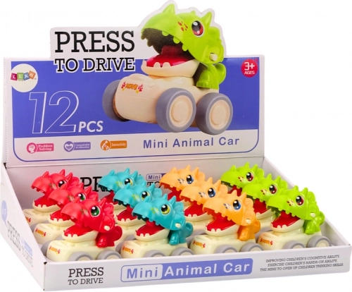 Slatki autić s motivom triceratopsa donosi zabavan tlačni pogon – dovoljno je pritisnuti dinosaurovu glavu i autić će sam krenuti naprijed. Izrađen je od mekog, na dodir ugodnog materijala, sigurnog za djecu. Kompaktne dimenzije idealne su za male dječje ručice. Dostupan u 4 boje: narančasta, crvena, zelena i plava.
