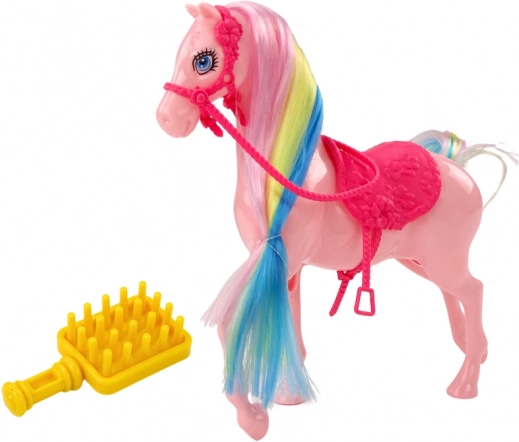 Uživajte u satima zabave s ovom prekrasnom figuricom konja sa šarenom grivom i ružičastim sedlom! Savršen junak za vaše dijete, za igru kod kuće i na otvorenom.