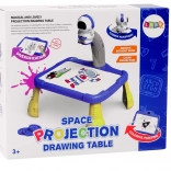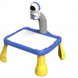 Projektor je u obliku astronauta i služi za projiciranje slika na papir, što djeci omogućuje lako pratiti i crtati kozmičke motive poput planeta, zvijezda, raketa i astronauta. Stolić je opremljen stabilnim žutim nogama i plavom prostranom površinom za crtanje.