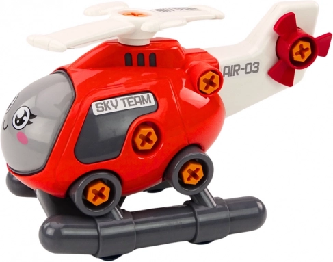 Otkrijte radost sastavljanja s crvenim šarafciger helikopterom koji djeca lako rastavljaju i ponovno sastavljaju. Rotirajući glavni rotor i pokretni kotačići dodaju realizam igri i potiču maštu pri polijetanju, slijetanju i spasilačkim misijama. Igračka je dizajnirana za male ruke i pomaže razvijati koordinaciju oko–ruka, strpljenje i preciznost.