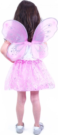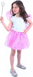 Čaroban ružičasti kostim za male vile! Set uključuje nježna krila s sjajnim detaljima, prekrasnu ružičastu tutu suknju sa satenskim rubom i uzorkom zvijezda i mjesečića, upotpunjenu vještičjim štapićem.