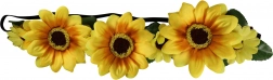 Ova traka za kosu je ukrašena s tri velika žuta cvijeta, koji plijene pažnju i dodaju Vašem izgledu svježinu i originalnost. Traka je udobna zahvaljujući elastičnom pričvršćivaču, koji osigurava sigurno i udobno nošenje tijekom cijelog dana.