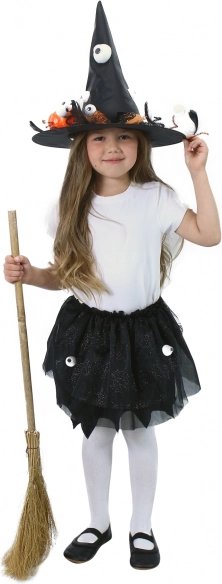 Dodajte djeci malo čarolije i tajanstvenosti s našim dječjim vještičjim kostimom. Kostim uključuje punu, crnu tutu suknju s elastičnim strukom za udobno nošenje te savršeno usklađen klobuk koji dodaje dozu razigranosti. Prikladan ne samo za Noć vještica, već i za druge maškare, gdje se vaše dijete može osjećati kao prava vještica.