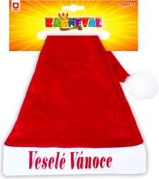 Uživajte u božićnoj atmosferi s našom crvenom božićnom kapom s bijelim obodom i pomponom, ukrašenom natpisom Sretni Božić.
