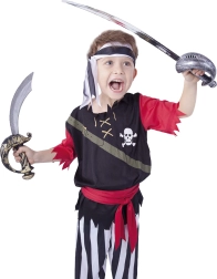 Karnevalski kostim za pravog pirata! Kostim veličine M namijenjen je dječacima u dobi od 6–8 godina (116–128 cm). Pažnja, pakiranje sadrži remen, gornji dio, hlače i maramu! Ne samo ove godine treba misliti EKO-nomično i EKO-loški! EKO-pakiranje je posebno pogodno za web trgovine gdje kupac kupuje prema fotografiji i nije potrebno veliko pakiranje s vješalicom. EKO-loški – za pakiranje je upotrijebljeno manje plastike i drugih materijala. Radi se o maloj prozirnoj ambalaži s fotografijom. EKO-nomično – EKO-ambalaža zauzima samo polovicu mjesta – uštedite skladišni prostor s nama!