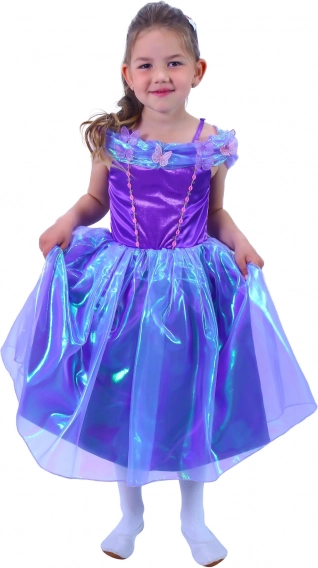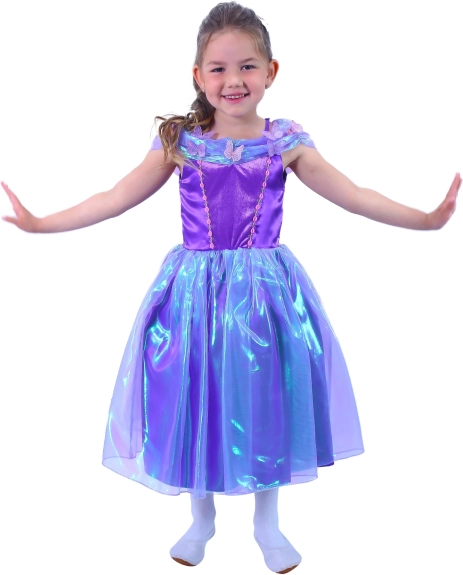 Ovaj ljubičasti kostim princeze pretvorit će svaku djevojčicu u zvijezdu svake proslave. Nježni svjetlucavi materijali, cvjetni i leptir detalji te lagana slojevita suknja naglašavaju bajkoviti izgled koji je udoban za cjelodnevno nošenje.