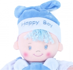 Slatka krpena lutka u plavoj odjeći s kapicom idealna je za maženje i prvu igru. Mekan tekstilni materijal, izvezeno lice i kompaktna veličina 25 cm čine je savršenom pratiteljicom za djecu kod kuće i na putovanjima.