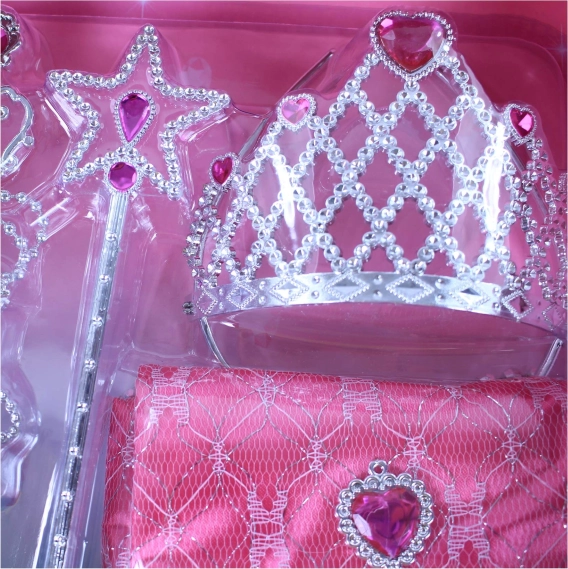 Probudite dječju maštu čarobnim princezinim kompletom koji će svaku djevojčicu pretvoriti u pravu princezu. U pakiranju se nalaze kruna, naušnice, ogrlica, čarobni štapić i torbica u prekrasnoj ružičastoj boji – idealno za preoblačenje, karneval i igru kod kuće.