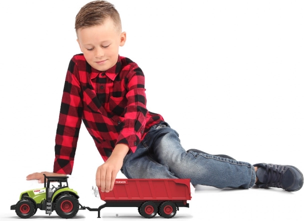 Moderni traktor s crvenom prikolicom iz kolekcije Moja mala farma razveselit će svakog malog farmera. Nudi svjetlosne i zvučne efekte, zamasnjak za glatku vožnju i odvojivu prikolicu za još više mogućnosti igre. Baterije su dijelom pakiranja.