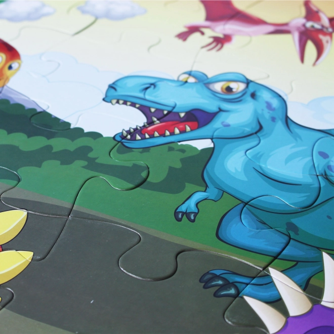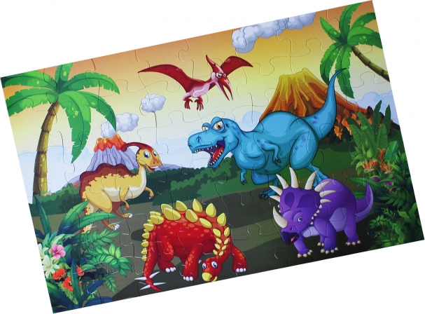 Podne puzzle s motivom dinosaura za djecu od 3 godine, sadrži 48 velikih dijelova za jednostavno sastavljanje. Rezultantna slika ima veličinu 92 x 62 cm.