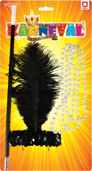 Očaravajući set za plesačice. Set uključuje traku za glavu s perjem, perle i držač za cigarete. Savršen dodatak za karneval ili zabavu!
