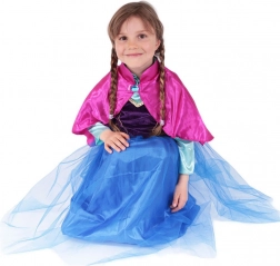 Ovaj stilski kostim pretvara svaku djevojčicu u hrabru princezu spremnu za zimske avanture. Bogate crno‑plave boje sa zlatnim detaljima i ružičasti satenski ogrtač s ukrasnom kopčom stvaraju dojmljiv izgled za karneval, rođendansku proslavu i presvlačenje kod kuće.